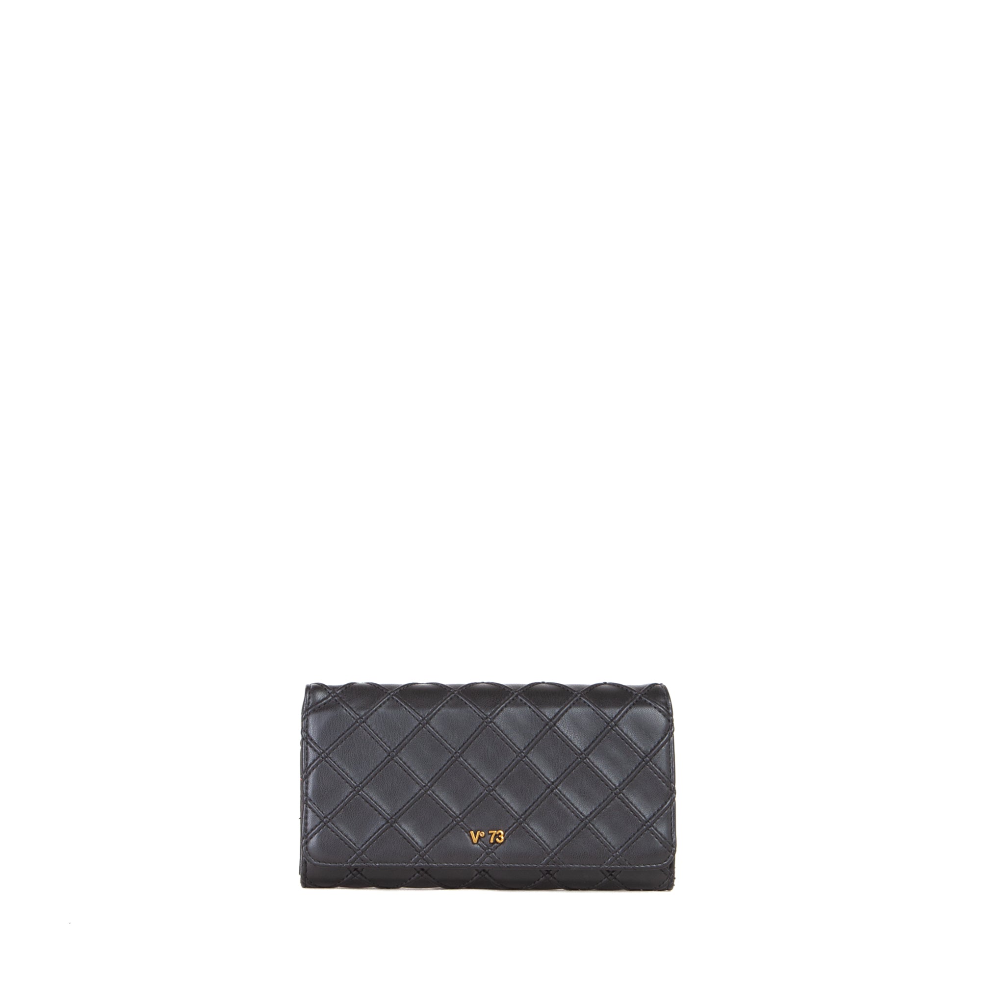Portafoglio realizzato in nappa ecofriendly con motivo matelassé. Metallerie color oro antico.