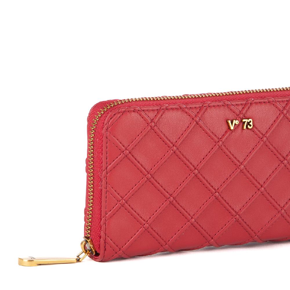 Portafoglio realizzato in nappa ecofriendly con motivo matelassé. Metallerie color oro antico.