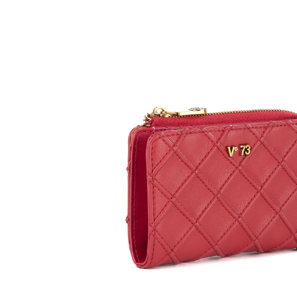 Portafoglio realizzato in nappa ecofriendly con motivo matelassé. Metallerie color oro antico.